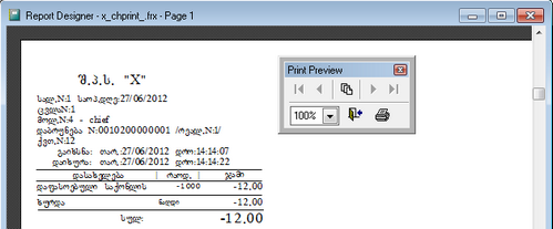 ჩეკში გაშიფრულად არის წარმოდგენილი დაბრუნების ოპერაციის ამსახველი ისეთი მონაცემები, როგორიცაა: საოპერაციო დღე, ცვლის ნომერი, რომელმა მოლარემ განახორციელა ჩეკის დაბრუნება, დაბრუნებული ქვითრის ნომერი, რეალიზაციის დროს ჩეკის ნომერი, ჩეკის გახსნის და დახურვის დრო, საქონლის დასახელება, დაბრუნებული საქონლის რაოდენობა და მომხმარებლისათვის დასაბრუნებელი თანხა.