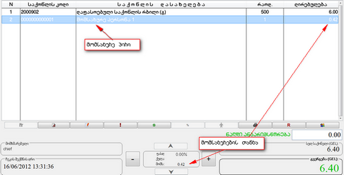 1. რეალიზებულ საქონელზე მომსახურების თანხის დამატება განახორციელოს მოლარე-ოპერატორმა, სისტემის საშუალებით;