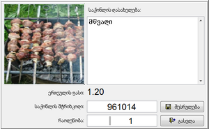 საზოგადოებრივი კვების ობიექტებზე, უმეტეს წილად, რეალიზებადი საქონლის დასახელებათა რაოდენობა შედარებით მცირეა, ვიდრე სუპერმარკეტებში. აქედან გამომდინარე შესაძლებელია თითოეული დასახელების საქონელზე (შტრიხკოდზე) მიბმული იყოს ამ საქონლის სურათი (შექმნილი იყოს საქონლის ცნობარი სურათებით) და მოლარე-ოპერატორმა რეალიზაცია მოახდინოს სურათების დახმარებით. საქონლის სურათებიან ცნობარში გადასვლა ხორციელდება საქონლის შტრიხკოდის ჩასაწერი ველის მარჯვნივ განთავსებული ღილაკის გამოყენებით: