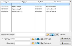 ფორმის შემდეგ (ქვედა სექტორში) იწერება მყიდველის რეკვიზიტები. თუ მყიდველის რეკვიზიტები შეტანილია პროგრამის ცნობარში, მაშინ მისი არჩევა ხდება მარტივად, ამისათვის დააწკაპუყნეთ (დააჭირეთ)