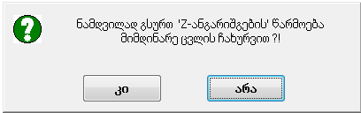უარყოფის შემთხვევაში ფანჯარა დაიხურება, ხოლო თანხმობის შემთხვევაში კი ეკრანზე გამოვა ფანჯარა სახელწოდებით "Z-ანგარიშგება":