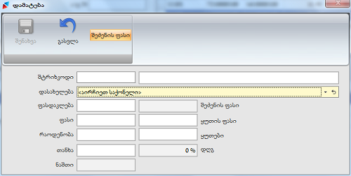 - ფასდაკლება-გრაფაში შესაძლებელია ფასდაკლების პროცენტის მითითება, არა უმეტეს საქონლის რეგისტრაციის დროს მითითებული პროცენტისა;