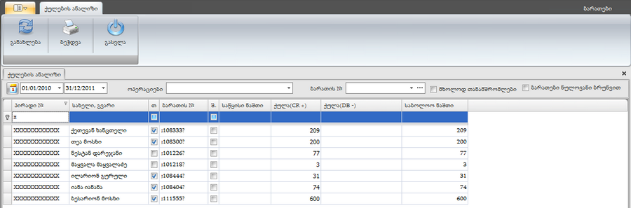 ფორმას აქვს შემდეგი ელემენტები და ღილაკები: