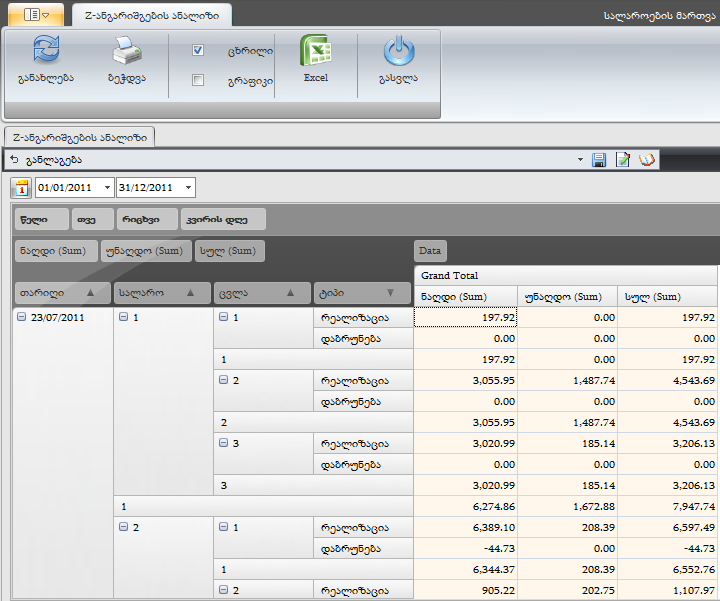 ფორმაში მონაცემები გადმოდის სალაროს ბაზიდან.