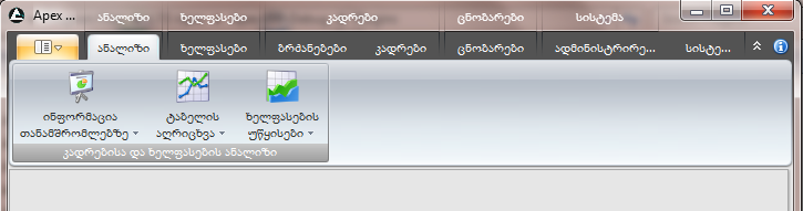 ანალიზი არის სისტემა HR-ის მოდული, რომლის დანიშნულებაა თანამსრომლებზე არსებული ინფორმაციის ანალიზი. იგი შეიცავს შემდეგ ბრძანებებს: