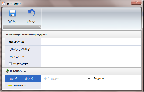 -მისამართი-ველში იწერება ბანკის (ფილიალი, სერვისცენტრი) მისამართი.
