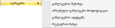 - არსებული განლაგების მოდიფიკაცია-მისი დახმარებით მომხმარებელს შეუძლია ცხრილის შენახული განლაგების მოდიფიცირება. ამისათვის ჯერ უნდა აღადგინოთ განლაგება და შემდეგ შევიტანოთ ცვლილებები ამ განლაგებაში. ამის შემდეგ დააწკაპეთ ბრძანებაზე "არსებული განლაგების მოდიფიკაცია", ეკრანზე გამოვა შეტყობინება: "განლაგება შენახულია!" დადასტურების შემდეგ განლაგების შენახვა მოხდება მოდიფიცირებული (შეცვლილი) სახით.