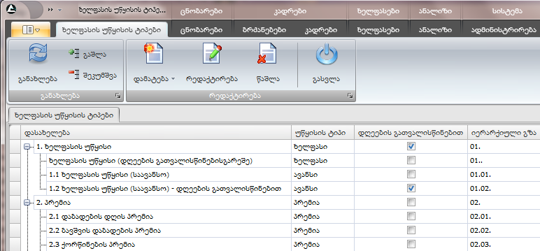 ფორმა წარმოადგენს ცხრილს, სადაც ხელფასის უწყისის ტიპები განლაგებულია იერარქიულად (თითოეულ ტიპს ჰყავს ერთი "მშობელი").